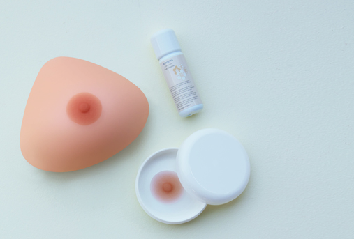- Self-adhesive silicone back adheres directly to the skin or breast form with security and ease.